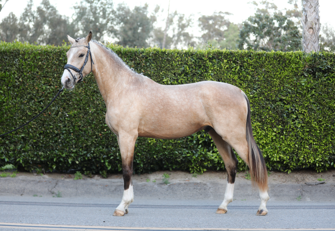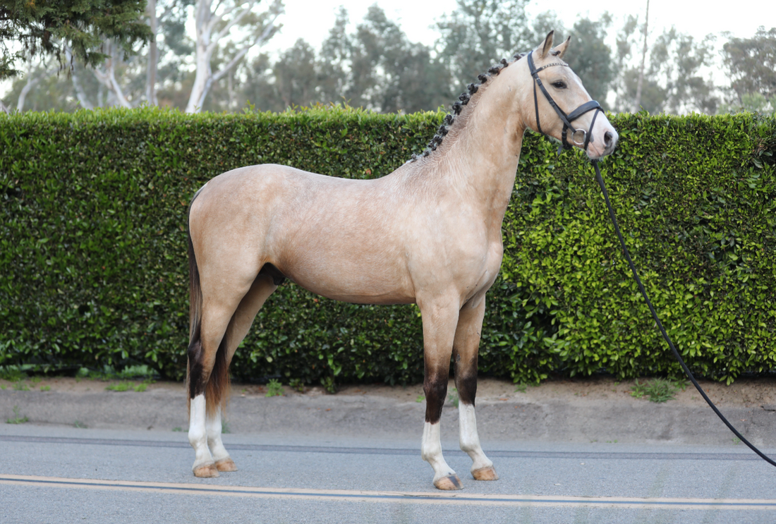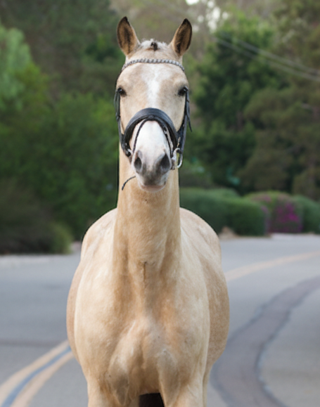 Imported to California in 2025, Zapphire impressed audiences immediately with his rare golden color, uphill frame, powerful movement, and calm, intelligent temperament. His videos have gone viral on social media, gaining hundreds of thousands of views and a growing waitlist of breeders interested in his unique combination of color and quality.